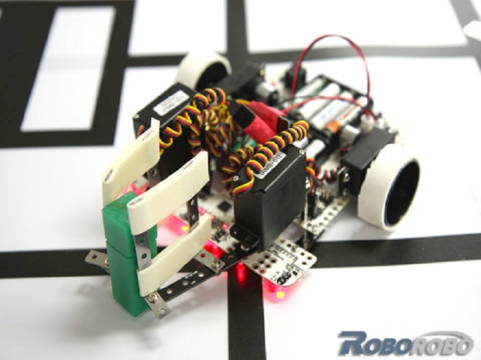 Элементы набора Robo Robo Black Line Pro позволяют собрать робота, движущегося вдоль определенной линии. Основой набора является печатная плата. Плата содержит: - 2 разъёма для двигателей постоянного тока - 2 разъёма для батарейного отсека - кнопку запуска , - переключатель питания, - порт подключения серводвигателя - разъемы для моторного привода - порт подключения ИК-датчика - Bluetooth порт - кнопку перезапуска робота - ISP порт не менее 1 шт.