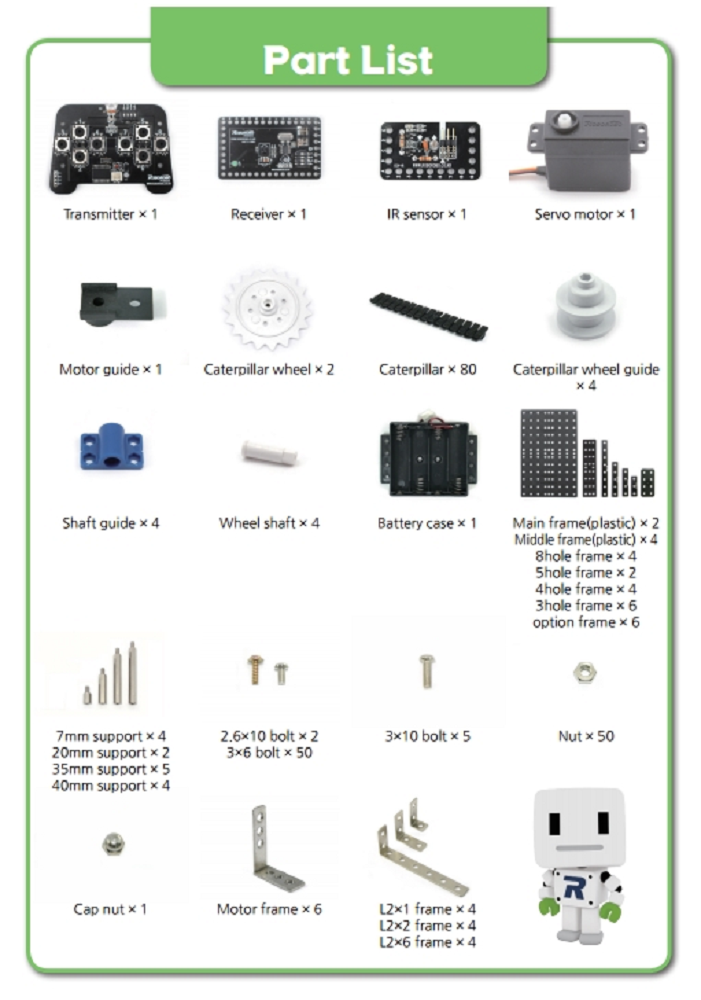 RoboRobo Robo Kit 1-2 не является отдельным самодостаточным пособием, а выступает в роли ресурсного дополнения к конструктору Roborobo №1, увеличивая «мощности» последнего в два раза. Набор помогает собрать 24 модели роботов разной сложности, а простое программирование способствует развитию логического мышления, что крайне важно для последующего понимания всей науки роботостроения.