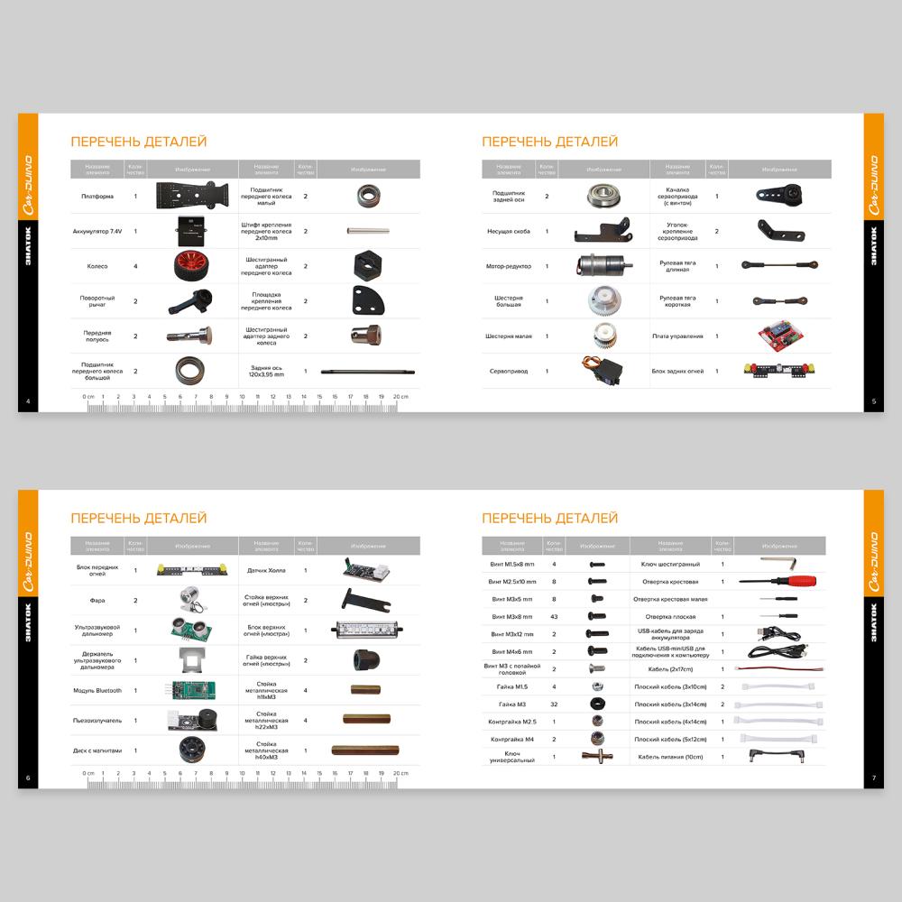 Вы можете начать с предложенных в красочной инструкции проектов, закачав одну из более 40 готовых программ, а затем создать множество своих оригинальных проектов. Причем, имеется возможность докупать или подключать имеющиеся у вас дополнительные датчики, чтобы расширить функционал автомобиля.