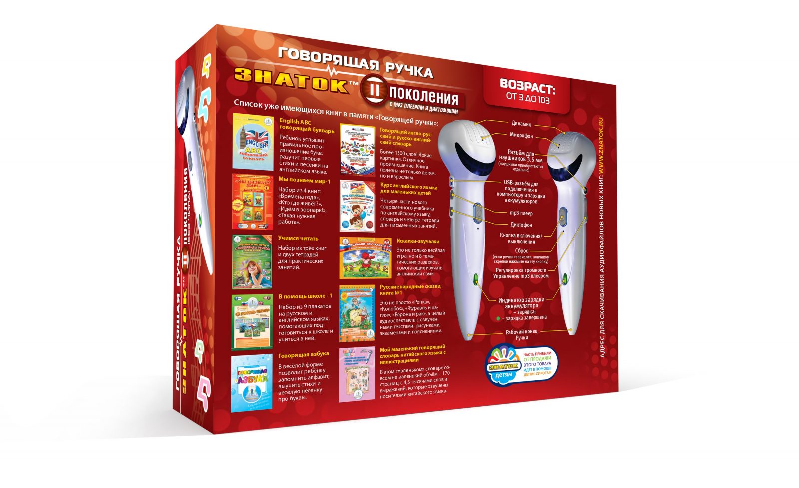 Она так же поможет обучить детей чтению и счёту, расскажет сказку на ночь, познакомит ребёнка с окружающим миром. Причём, ручка озвучивает не только слова, но и рисунки! Для превращения ручки в удивительного рассказчика и доброго учителя достаточно коснуться, расположенного на книге или плакате, вот такого логотипа ►