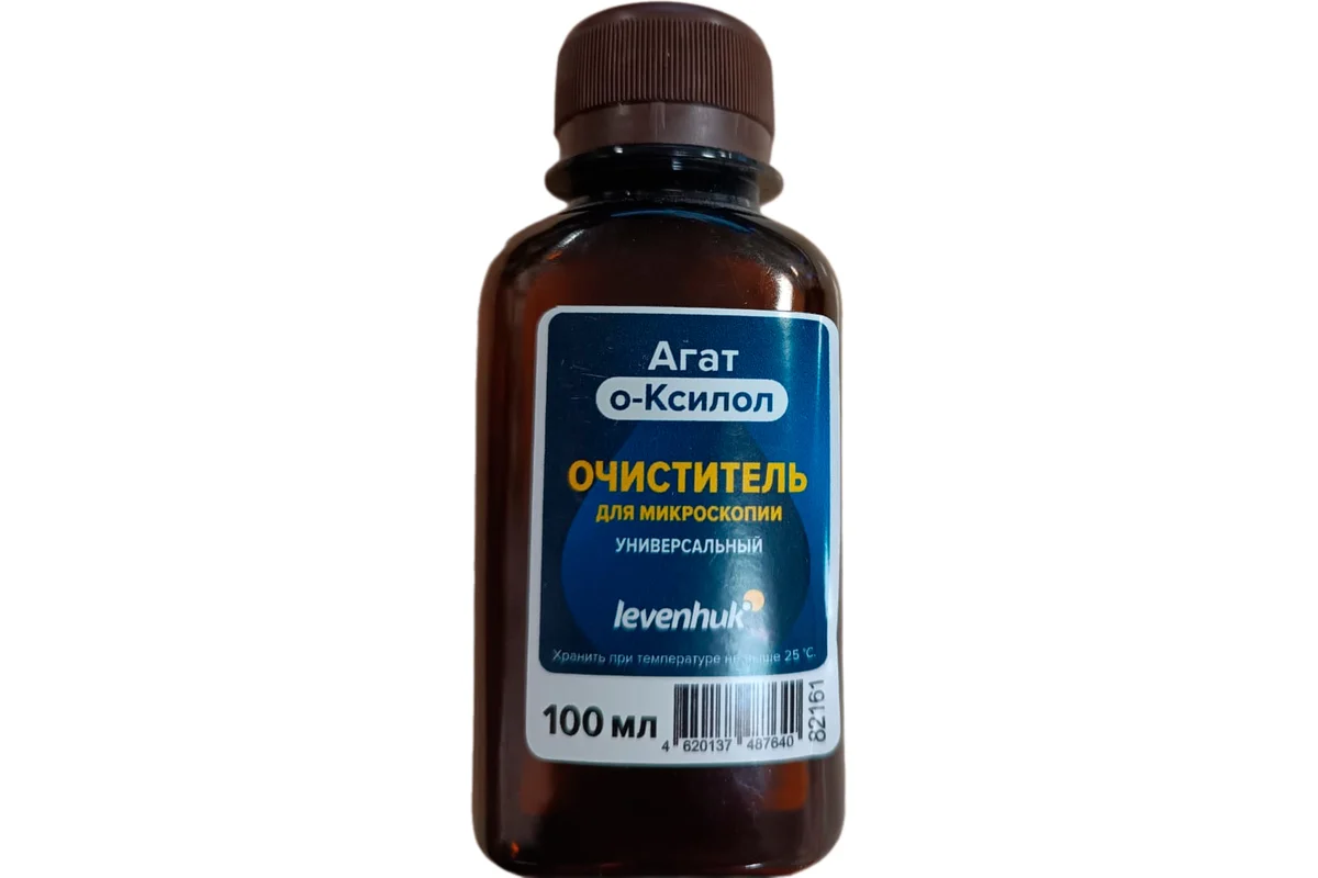 Очиститель Levenhuk Агат о-Ксилол – средство для ухода за оптикой, которое мягко, быстро и эффективно удаляет остатки иммерсионного масла. Может применяться как для предметных и покровных стекол, так и для линз объективов микроскопов.