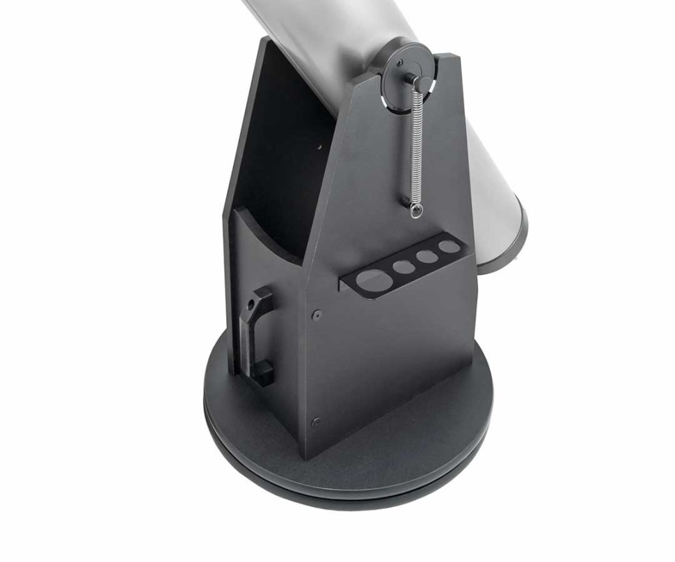 Монтировка Добсона, пожалуй, наиболее проста в управлении и не вызывает затруднений при освоении. Но ее любят не только новички, но и профессионалы. В том числе и за то, что она более удобна для длительных наблюдений и более устойчива. Также ее можно быстро разбирать и собирать, что важно при астрономических выездах на природу. К тому же монтировка телескопа GSO Dob 8" дополнена удобно полочкой для аксессуаров.