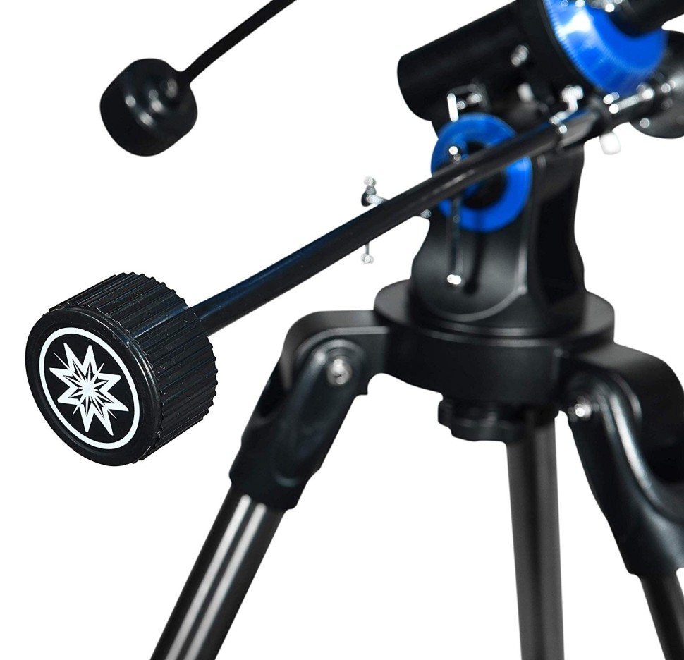 Труба телескопа устанавливается на монтировку при помощи крепления «ласточкин хвост». Усиленная экваториальная монтировка дает возможность компенсировать суточное движение объектов. Для плавного перемещения трубы используются механизмы тонких движений, дополнительно можно установить моторные приводы. Стальная тренога надежно держит всю конструкцию и обеспечивает устойчивое положение телескопа.