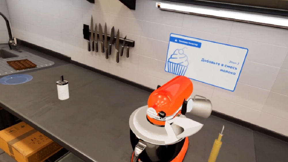 Симулятор Кондитера погружает пользователя в полный процесс работы специалиста, начиная с подготовки ингредиентов для готовки и заканчивая декорированием десерта перед подачей. Обучающийся самостоятельно сможет правильно приготовить капкейки, следуя интерактивным инструкциям. В VRсреде можно обучаться работе с различными инструментами, необходимыми для работы кондитера, такими как планетарный миксер, духовка и прочее.