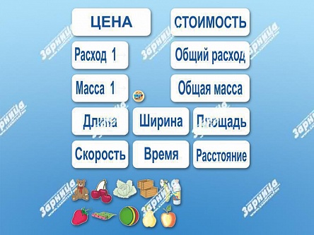 К фрагменту прилагается комплект тематических магнитов "По предмету "математика"", которые позволяют обозначить исходные данные задачи.