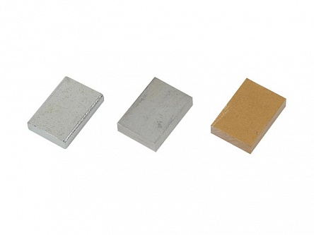 Набор состоит из трех тел равного объема: брусок стальной, брусок деревянный, брусок алюминиевый.