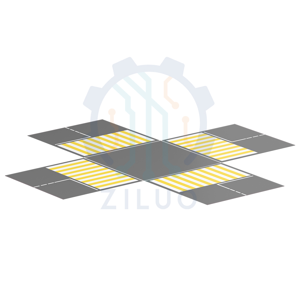 Четырехсторонний перекресток - это модель перекрестка, состоящая из секций, на которой изображена проезжая часть с дорожной разметкой и пешеходными переходами.