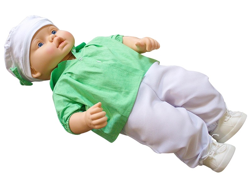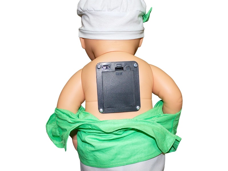 После включения симулятора носогубный треугольник становится синим — признак цианоза, — и слышен хрипящий звук. Если инородное тело не будет своевременно удалено из ротовой полости, пульс на плечевой артерии исчезнет.