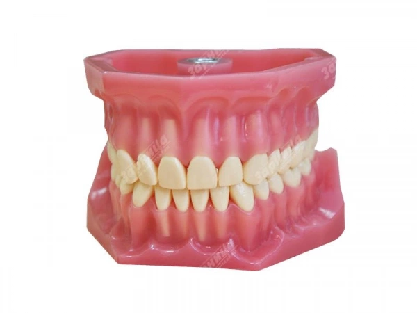 Представляет собой денто-модель верхней и нижней челюсти, анатомически соответствующая зубочелюстному аппарату взрослого пациента. Смыкание реализовано в стабильной окклюзии, с комплектом из 28 модельных зубов. Все зубы съемные и фиксируются при помощи винтов с внутренним пазом тип "Звезда", позволяющим избежать срыва щлица при многократной замене модельных зубов.