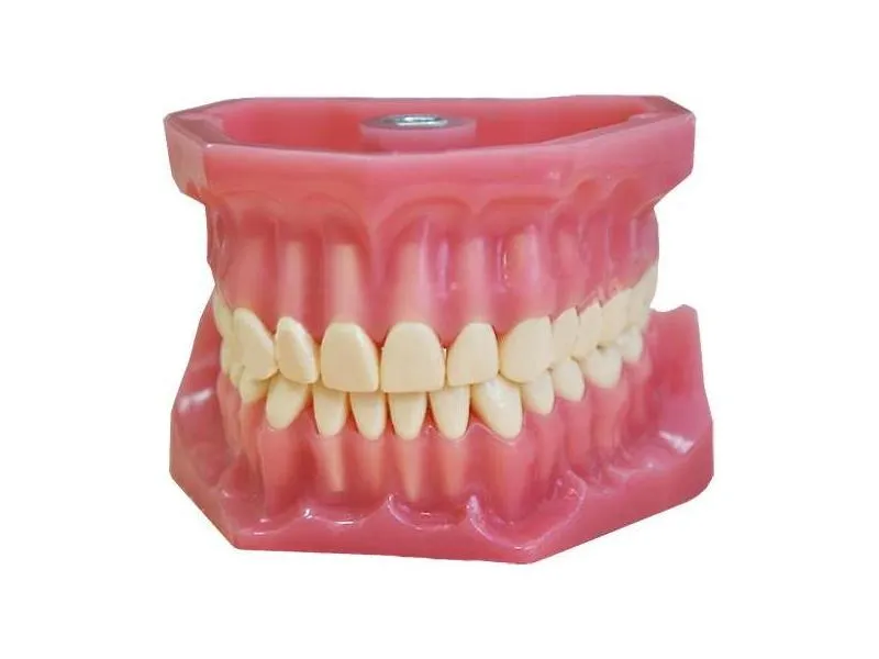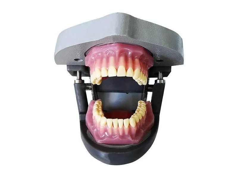 • Денто-модель верхней и нижней челюстей в стабильной окклюзии ЧВН-32, анатомически соответствующая зубочелюстному аппарату взрослого пациента. Смыкание реализовано в стабильной окклюзии, с комплектом из 32 модельных зубов. Все зубы съемные и фиксируются при помощи винтов.
