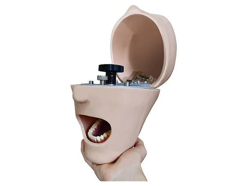 • Модель головы человека со встроенным регулируемым артикулятором, воспроизводящим все анатомические движения нижней челюсти, с возможностью регулировки по высоте для установки различных моделей челюстей.