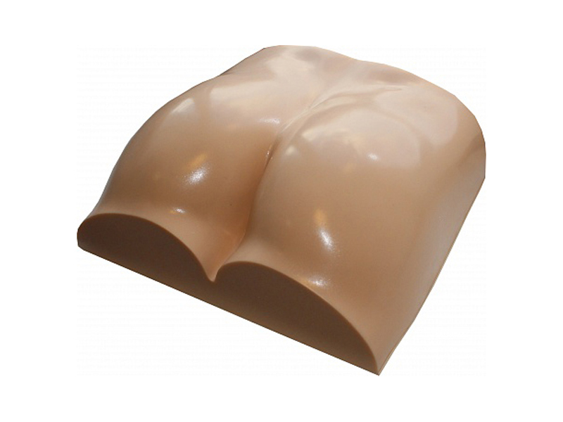 Фантом ягодиц для отработки техники внутримышечных инъекций Zarnitza представляет собой анатомически точную модель ягодичной области таза человека с воссозданным рельефом и костными ориентирами (крестец, большой вертел).