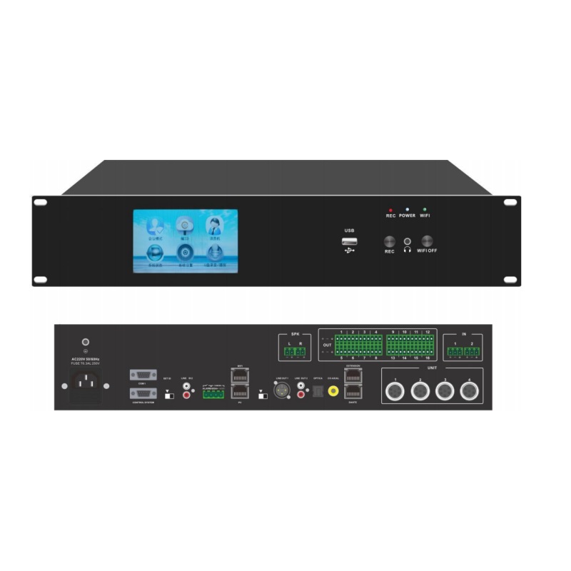 Он также оснащен встроенным высокопроизводительным DSP-процессором, который обеспечивает широкие возможности настройки аудиоматрицы, включая эквалайзер, чувствительность микрофона и громкость. Поддержка одного блока управления конференцией для реализации независимого управления разделами и объединенного аудио 16 конференц-залов. Интерфейсы аудиовхода и выхода позволяют гибко настраивать параметры звука для каждого выходного канала. Система также поддерживает функции записи, голосования, управления микрофонами и другие, делая ее идеальным решением для проведения успешных конференций.
