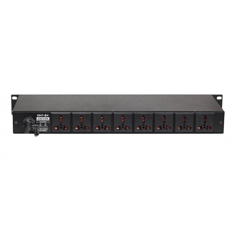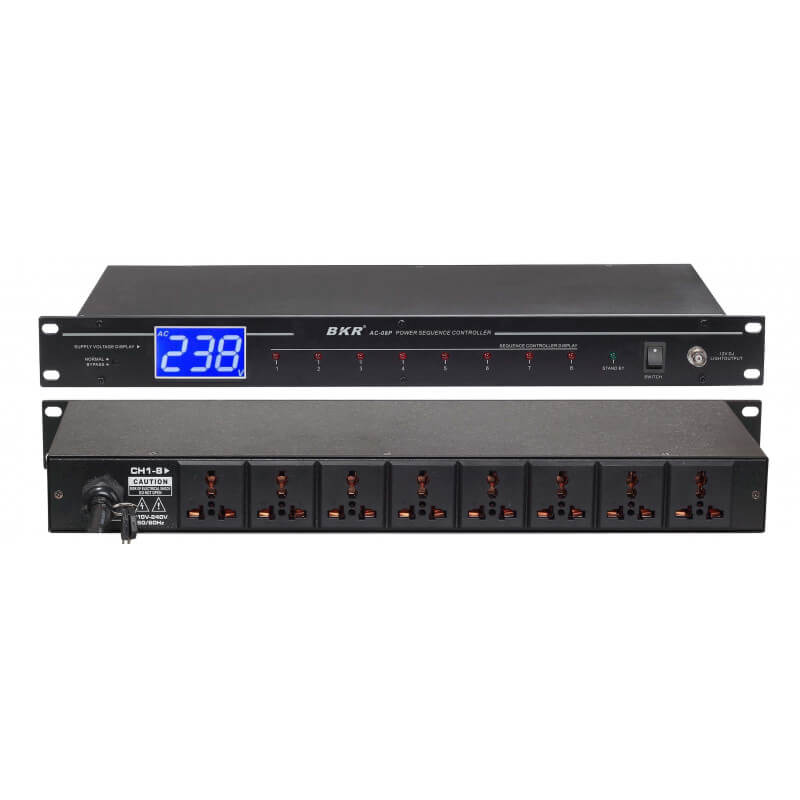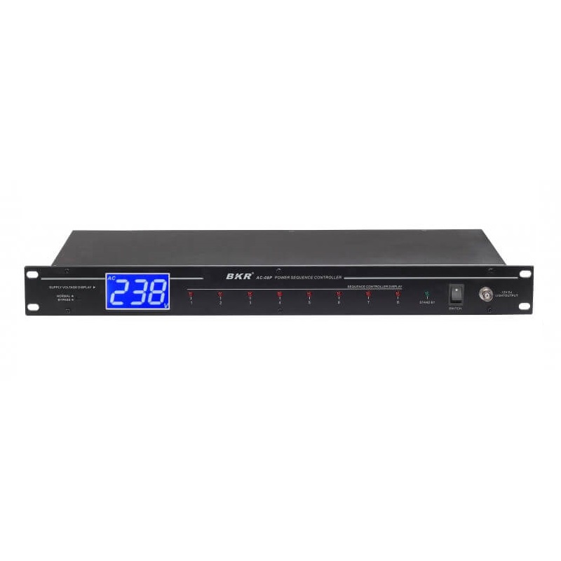 Контроллер питания BKR AC-08P поддерживает восемь устройств для последовательного электропитания. Защита аудио оборудования от токового удара, уменьшение воздействие электрического тока на схему оборудования.