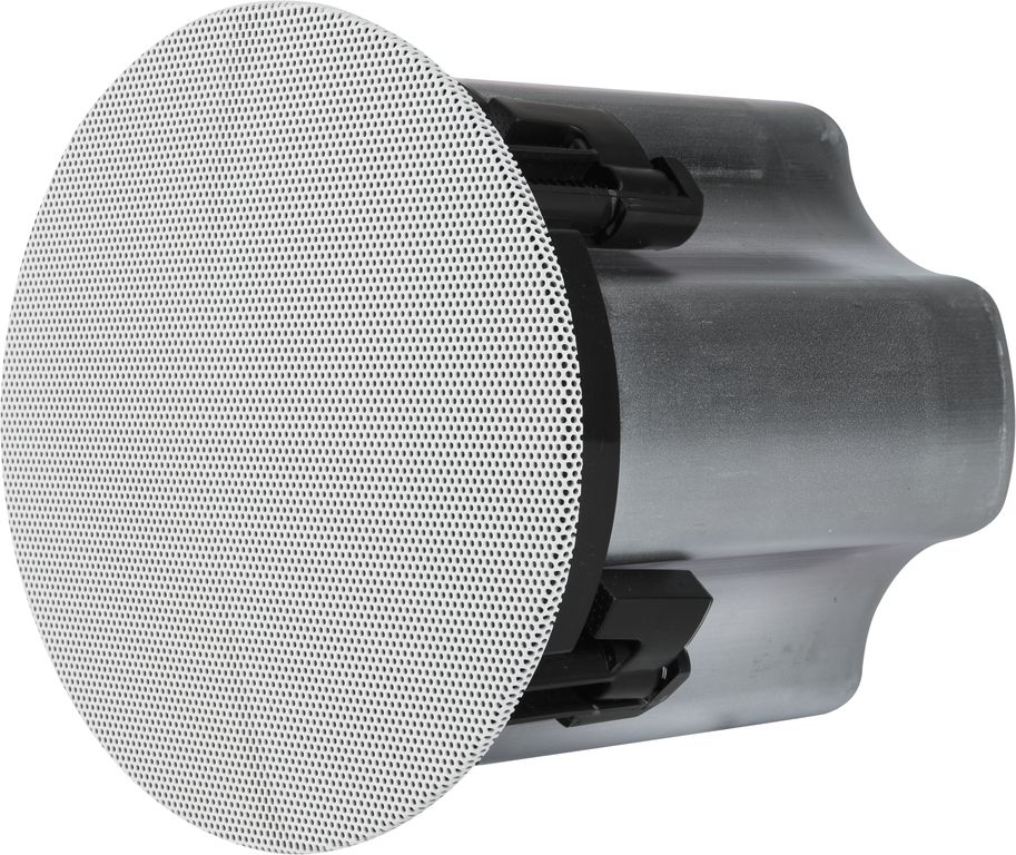 Безрамочная акустическая система с минималистичным дизайном комплектуется металлическим грилем белого цвета, который надёжно крепится к корпусу с помощью магнитов. Решетка гриль может быть окрашена в любой цвет, что позволяет системе полностью соответствовать интерьеру помещения. Опциональный адаптер позволяет использовать квадратные решетки гриль.
