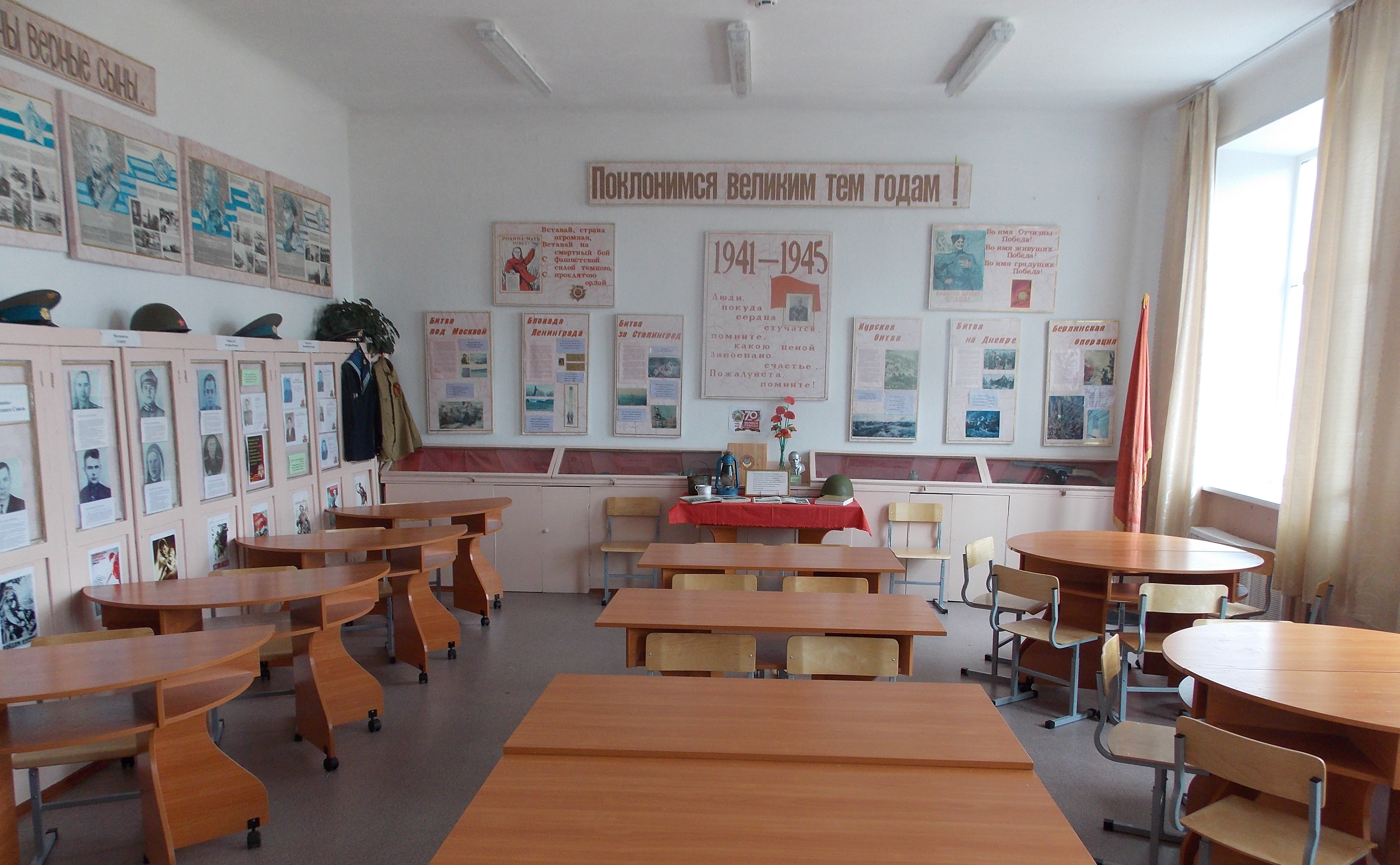 Большое место в кабинете отведено наглядным средствам обучения, которые являются не только источниками информации, но помогают также управлять познавательной деятельностью учащихся, обеспечивают новые способы передачи информации, позволяют чередовать различные виды работы (коллективные, индивидуальные, устные, письменные), расширяют возможности для самостоятельной работы учащихся и значительно облегчают воспитание культуры общения.